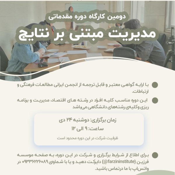 اطلاعیه برگزاری کارگاه: دومین کارگاه مقدماتی مدیریت مبتنی بر نتایج