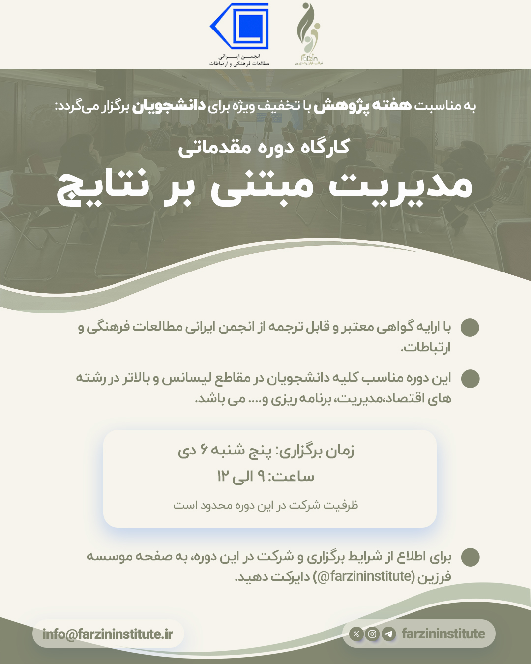 📢 موسسه فرزین با همکاری انجمن علمی ایرانی مطالعات فرهنگی و ارتباطات برگزار میکند: