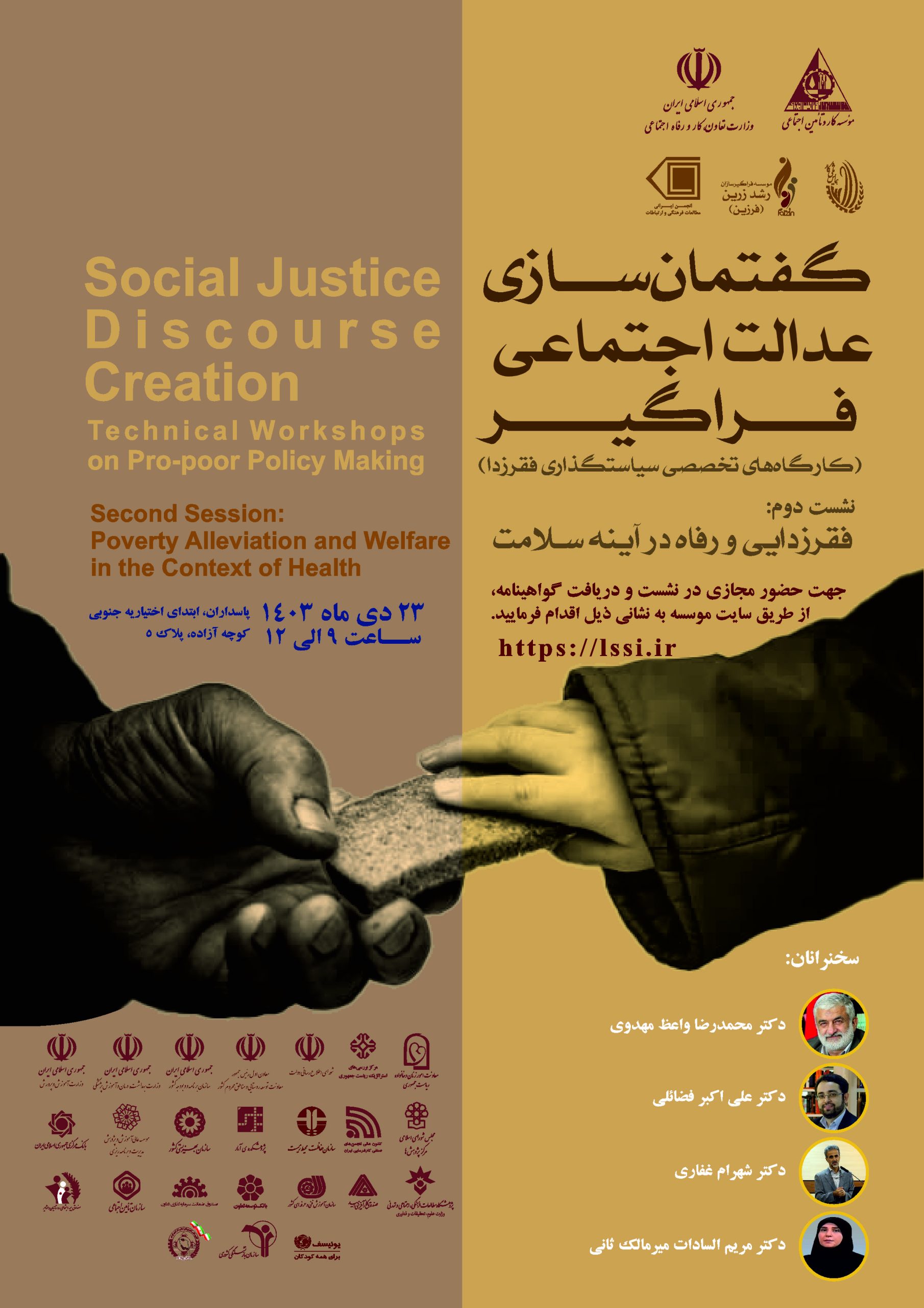 در دومین نشست از سلسله نشست‌های «گفتمان‌سازی عدالت اجتماعی فراگیر» که با همکاری وزارت تعاون، کار و رفاه اجتماعی٫ مؤسسه کار و تأمین اجتماعی و مؤسسه فرزین برگزار می‌شود، موضوع «فقرزدایی و رفاه در آینه سلامت» مورد بررسی قرار خواهد گرفت. این نشست در تاریخ ۲۳ دی ۱۴۰۳ برگزار می‌شود و بر نقش نظام سلامت در کاهش فقر و ارتقای رفاه اجتماعی تمرکز دارد.