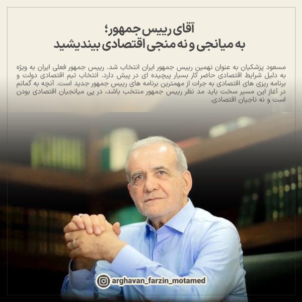 آقاي رييسجمهور به ميانجي و نه منجي اقتصادي بينديشيدSadra_rn16 تیر 1403یادداشتی از دکتر ارغوان فرزین معتمد پژوهشگر اقتصادی مسعود پزشكيان به عنوان نهمين رييسجمهور ايران انتخاب شد. رييسجمهور منتخب ايران ... ادامه مطلب