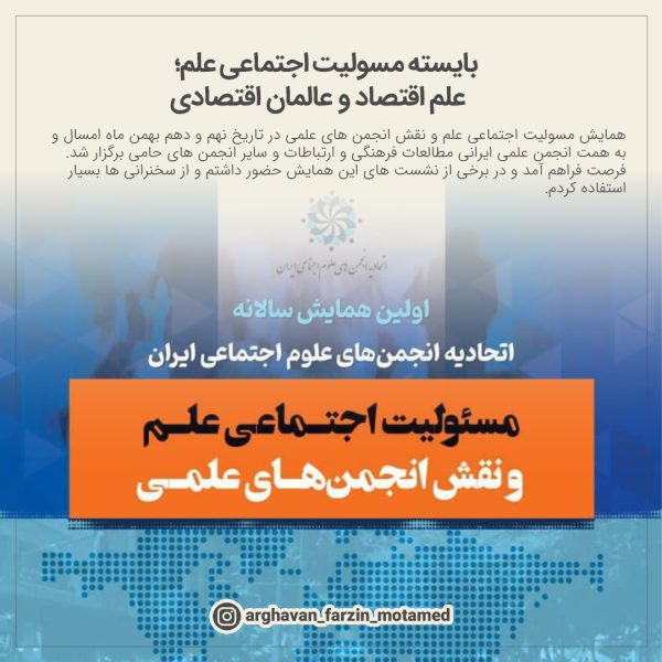 بايسته مسئوليت اجتماعی علم; علم اقتصاد و عالمان اقتصادیSadra_rn14 بهمن 1402یادداشتی از دکتر ارغوان فرزین معتمد پژوهشگر اقتصادی همايش مسووليت اجتماعي علم و نقش انجمنهاي علوم اجتماعي در تاريخ نهم ... ادامه مطلب